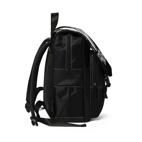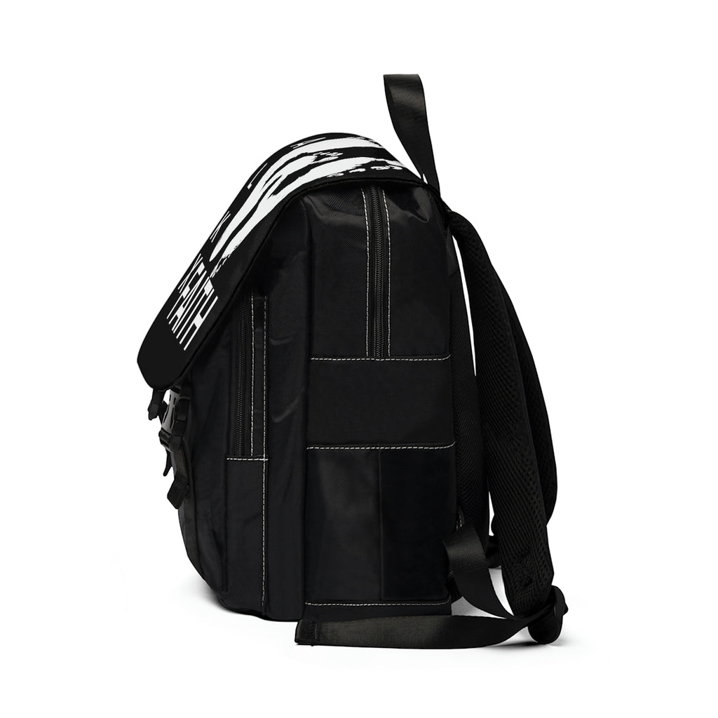 Casual backpack in a classic shape with a front flap design. It is made of durable Oxford canvas. It has two slip interior pockets and one laptop sleeve in the main compartment, a front zipper pocket, and two side pockets.